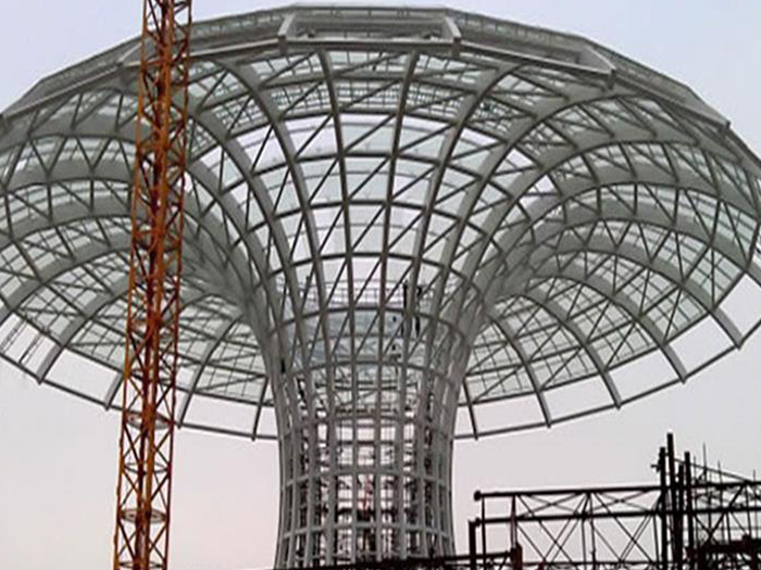二、球形网架结构因其结构新颖,受力合理,自重轻、用钢量低等优点。如大型体育场馆球形辉县螺栓球网架、公共场馆球形网架、电厂辉县螺栓球网架、水泥工业球形网架、仓储物流球形网架、辉县干煤棚工业球形网架、辉县收费站辉县加油站球形网架、展览中心、影剧院、商场、航站楼、候车厅、工厂辉县车间、仓库、电视塔等球形螺栓球节点网架。国内球形网架结构主要分为:辉县焊接球节点网架及螺栓球节点网架两种。螺栓球节点网架其构件工厂内加工量较大,现场安装便捷,适用于现场工期紧,辉县施工条件、用电量受制约,网架形状复杂、辉县杆件定位困难的异形结构。螺栓球节点球形网架系统基本由辉县杆件、螺栓球、支撑支座等组成。按照节点形式可分为交叉辉县桁架体系、四角锥体系、三角锥体系等。支撑方式多为固定支座支撑。对于大面积、大跨度及有特殊受力或伸缩要求的网架结构可采用橡胶支座、滑移支座、球铰支座等支撑形式,以满足结构自身的受力稳定、均衡,便于内力释放等设计要求。